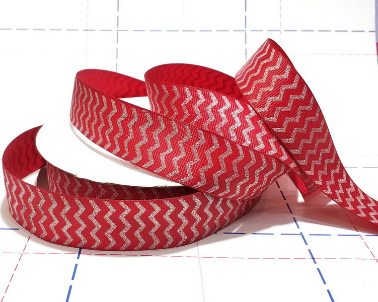Назад 264 25мм Репсовая лента с рисунком 18,3м (+-1м) ЗигЗаг серебряный Красный