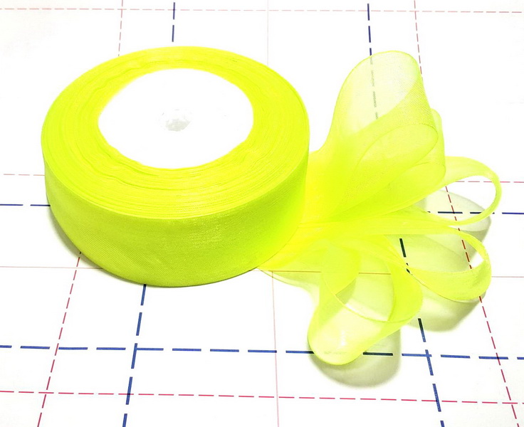 Назад 27 Лента Органза 40мм 45,72м/боб (+-1м) Лайм флюор