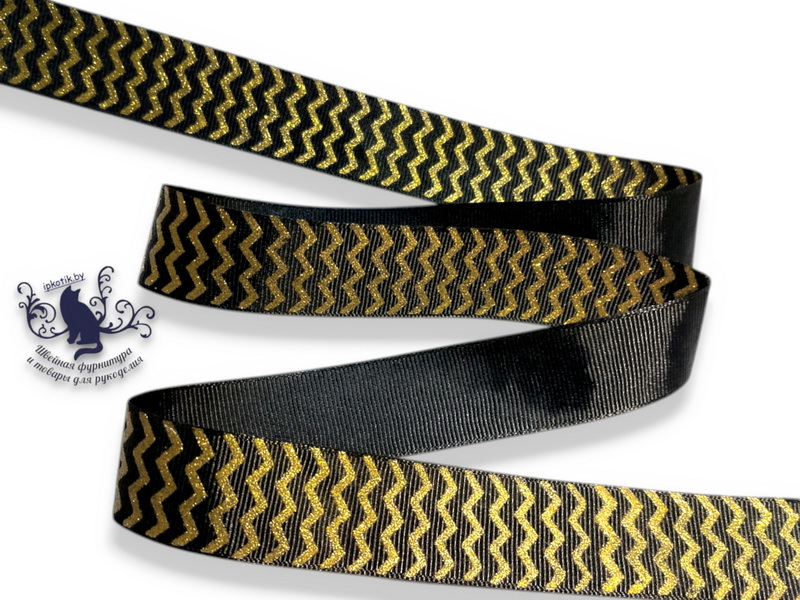 - 277 25мм Репсовая лента с рисунком 18,3м (+-1м) ЗигЗаг золотой Черный