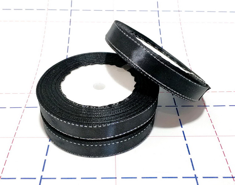 Назад 29 Лента атласная с люрексом 12мм серебро 23м/боб (+-1) Черный