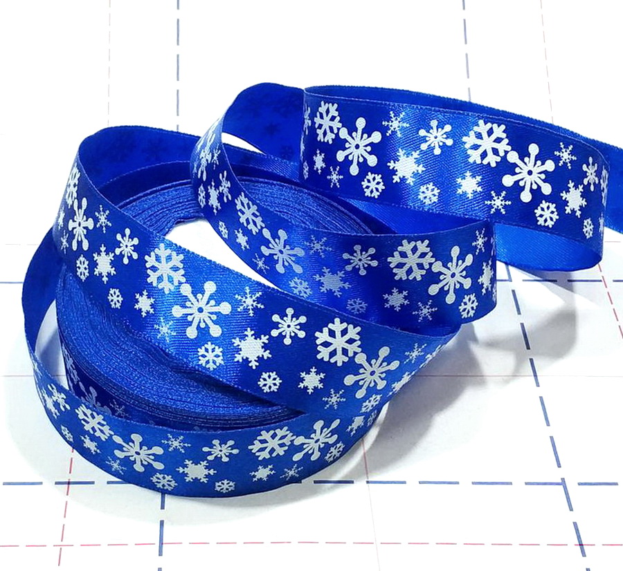 - 290 Лента атласная 25мм с рисунком 23м/боб (+-1м) Снежинки синий