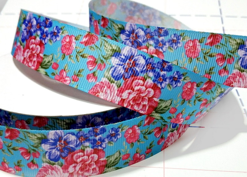 - 294 25мм Репсовая лента с рисунком 23м (+-1м) Цветы
