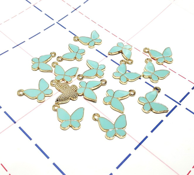 Назад 301 Подвеска 15*14 мм Бабочка Золото/голубой