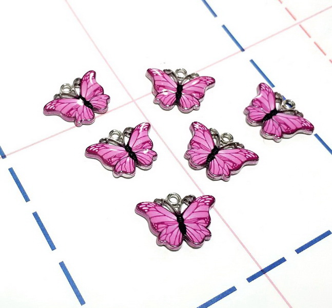 - 303 Подвеска 13*18 мм Бабочка Серебро/розовый