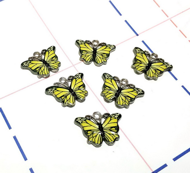 - 304 Подвеска 13*18 мм Бабочка Серебро/желтый