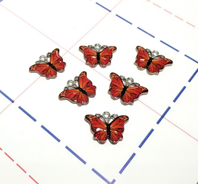 - 305 Подвеска 13*18 мм Бабочка Серебро/красный