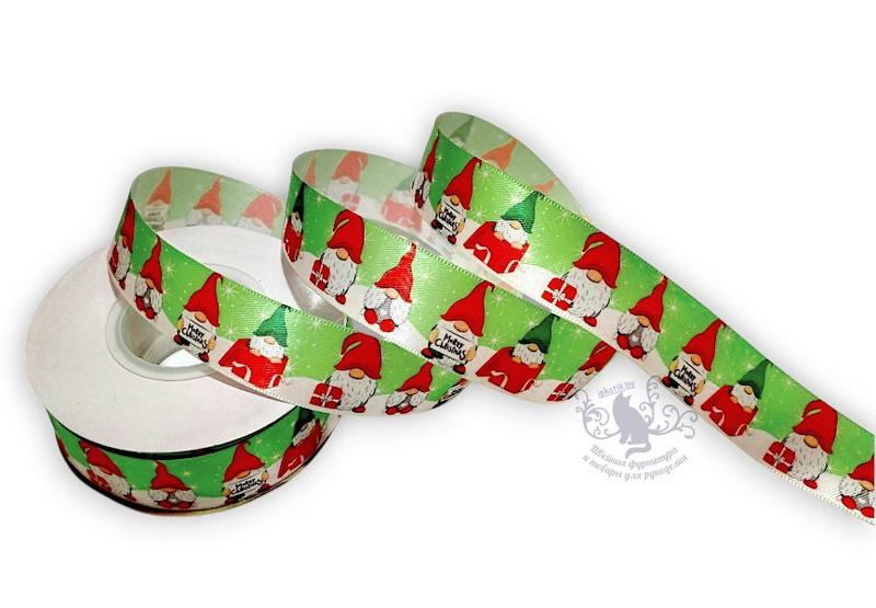 - 308 Лента атласная 25мм с рисунком 23м/боб (+-1м) Гномы