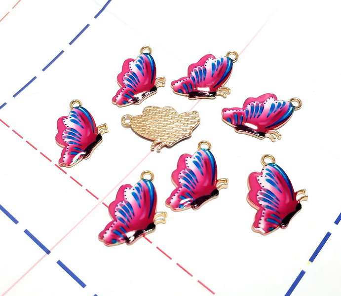 - 308 Подвеска 15*25 мм Бабочка Золото/розово-бирюзовый