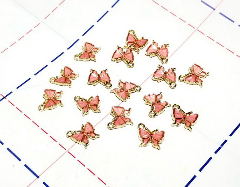- 322 Подвеска 10*13 мм Бабочка Золото/нежно-розовый