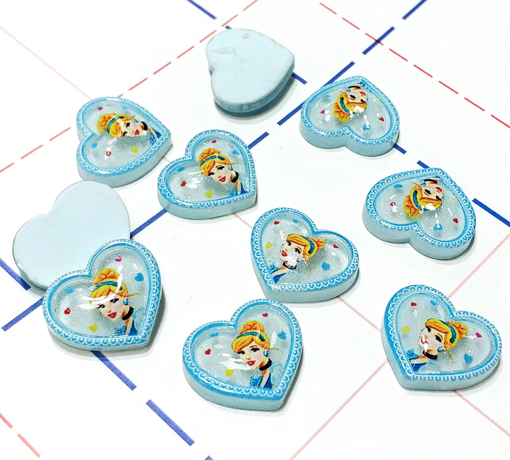 - 336 Кабошон Сердце с принцессой 18*20 мм голубой