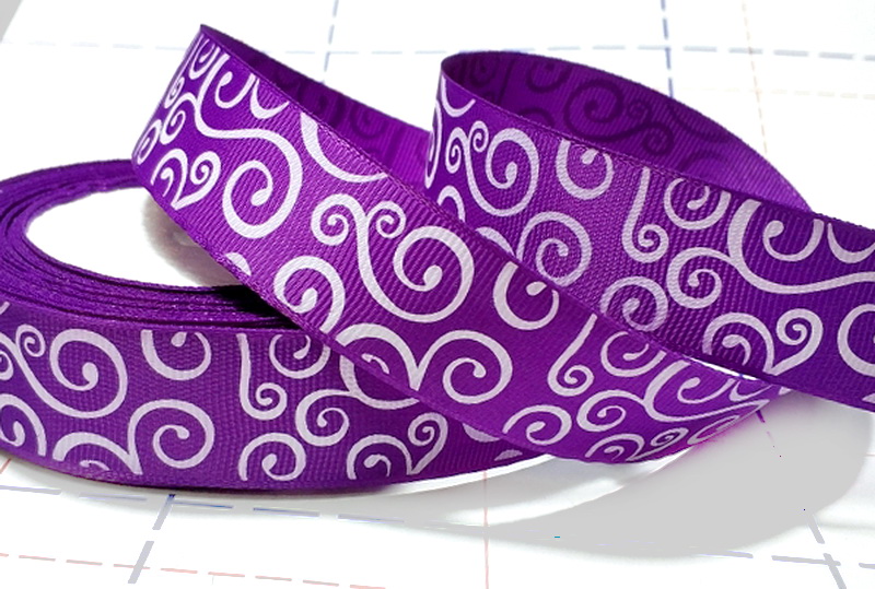 Назад 349 25мм Репсовая лента с рисунком 23м (+-1м) Витушки Фиолетовый/белый