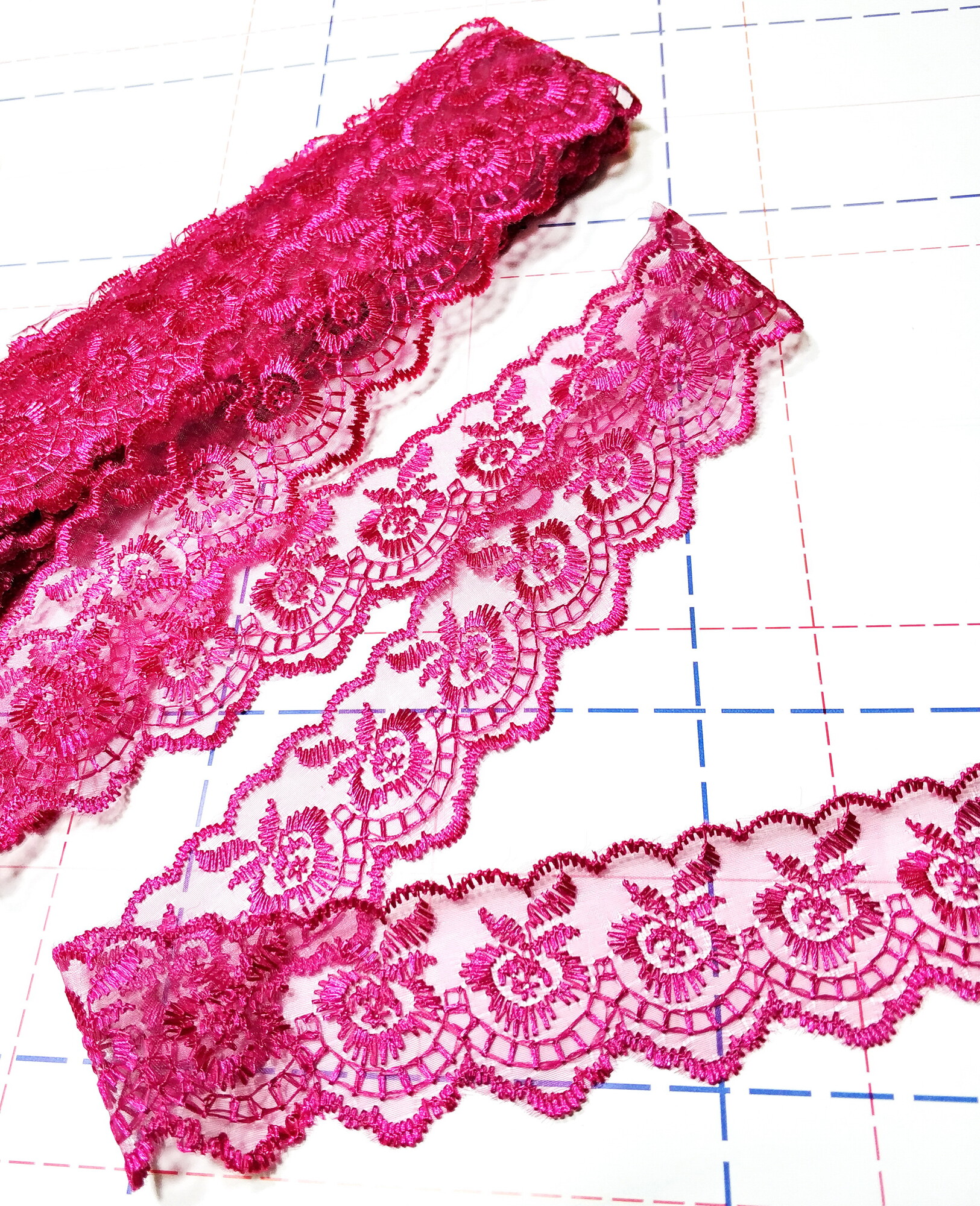 - 35-45мм Кружево на шифоне 9,1 (+-0.5) м/боб Малиновый