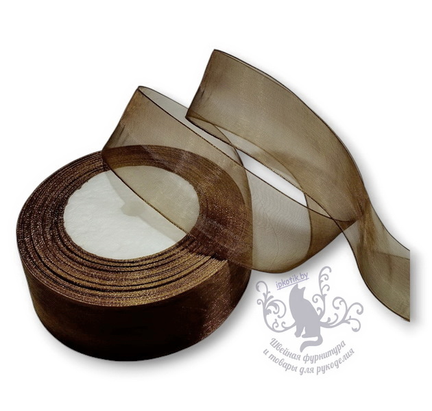 - 35 Лента Органза 35мм 45,72м/боб (+-1м) Темно-коричневый