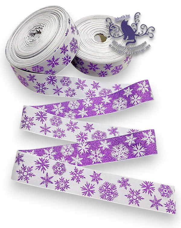 - 36 Лента жаккард металлизированный 34мм Снежинки 25м/боб (+-1м) Фиолетовый 67ПЭ 33Мет