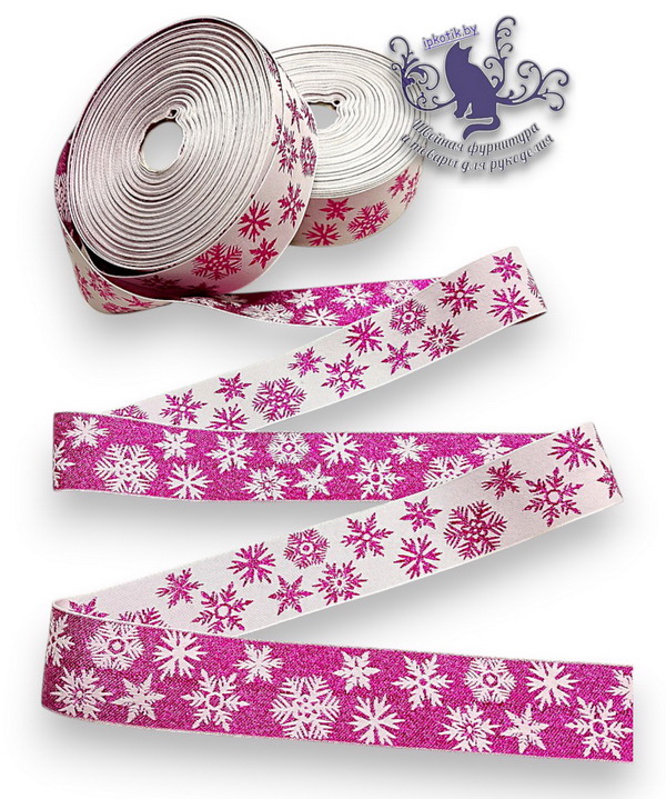 - 36 Лента жаккард металлизированный 34мм Снежинки 25м/боб (+-1м) Фуксия 67ПЭ 33Мет