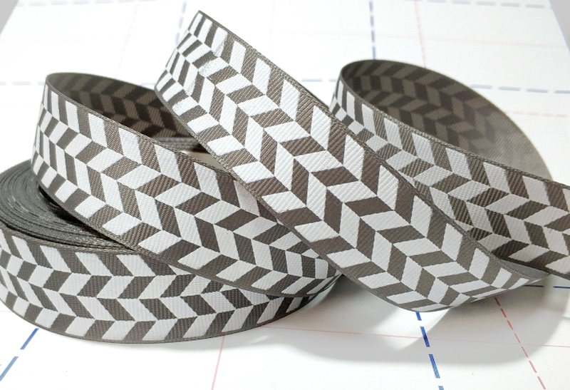 - 364 25мм Репсовая лента с рисунком 23м (+-1м) Геометрия Темно-серый/белый