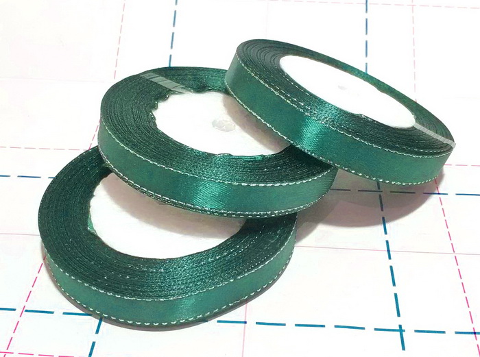 Назад 37 Лента атласная с люрексом 12мм серебро 23м/боб (+-1) Изумрудный
