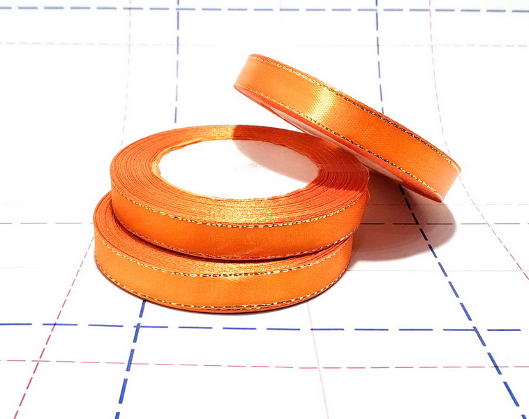 Назад 38 Лента атласная с люрексом 12мм серебро 23м/боб (+-1) Ярко-оранжевый