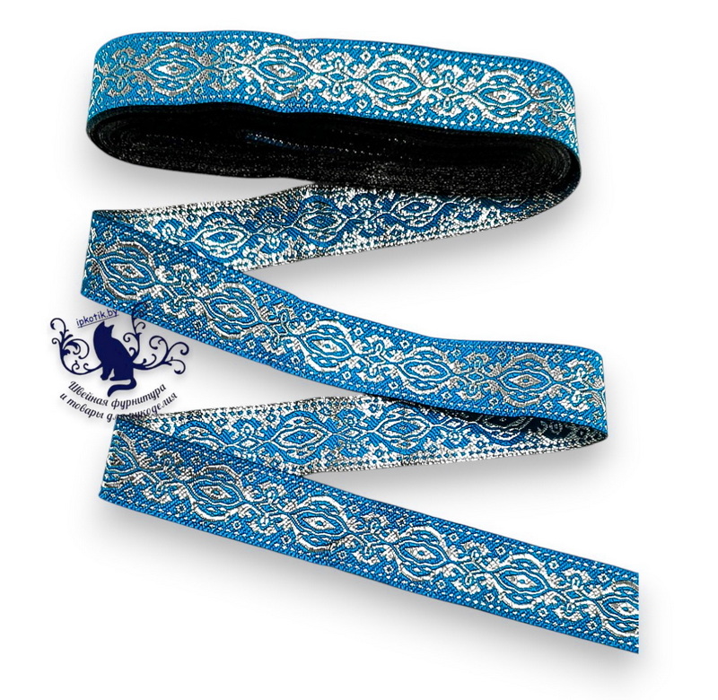 - 41 Лента жаккард 20мм Узор_2009 7м/боб (+-0,3м) Лазурный/серебро