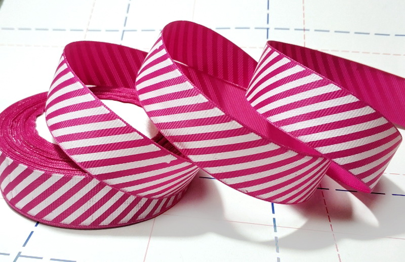 - 411 25мм Репсовая лента с рисунком 23м (+-1м) Диагональ Ярко-розовый/белый