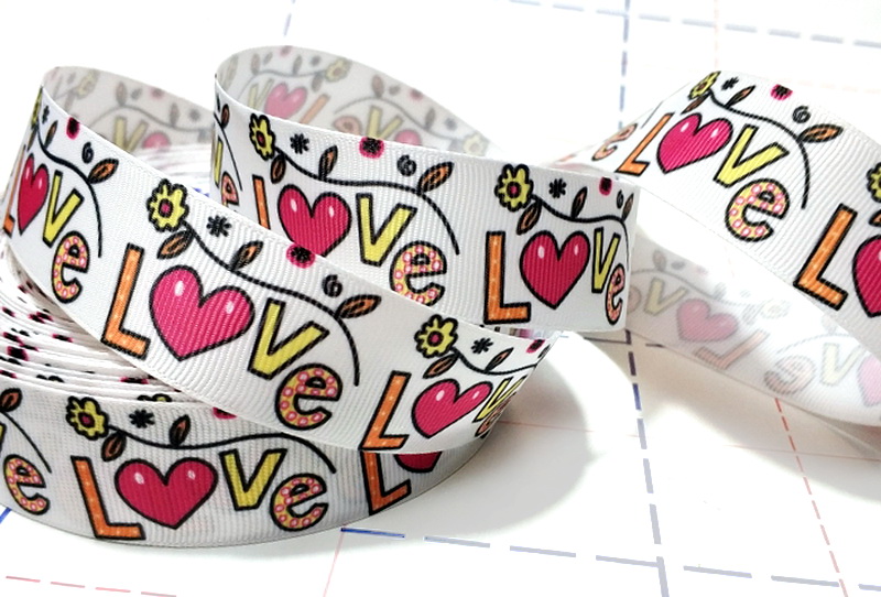 - 420 25мм Репсовая лента с рисунком 23м (+-1м) LOVE