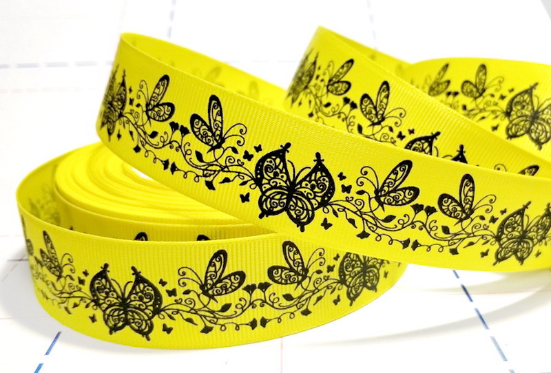 - 422 25мм Репсовая лента с рисунком 23м (+-1м) Бабочки Желтый/черный