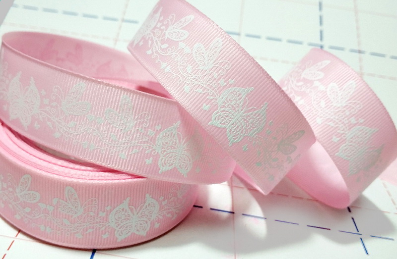 - 423 25мм Репсовая лента с рисунком 23м (+-1м) Бабочки Розовый/белый