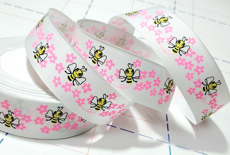 - 424 25мм Репсовая лента с рисунком 23м (+-1м) Пчелки