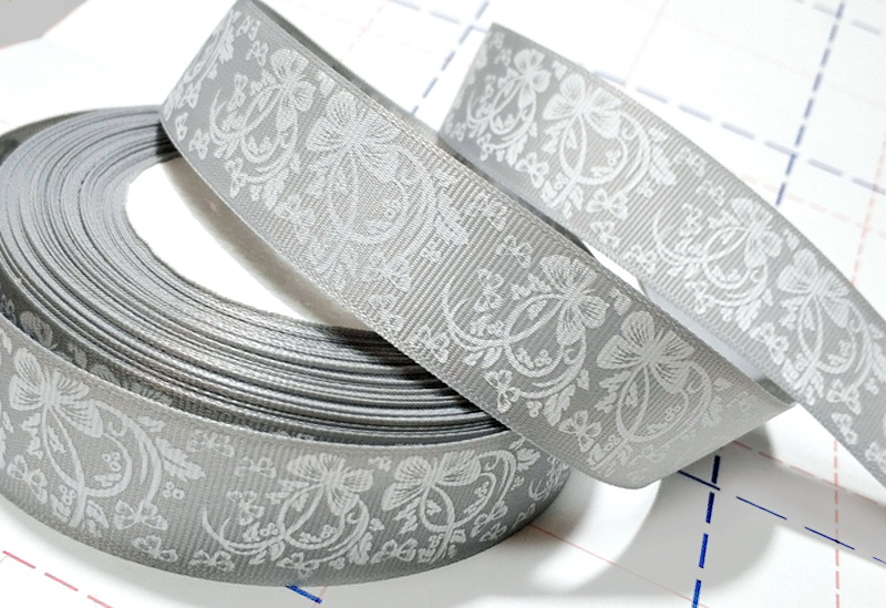 - 430 25мм Репсовая лента с рисунком 23м (+-1м) Бабочки-витушки Серый/белый