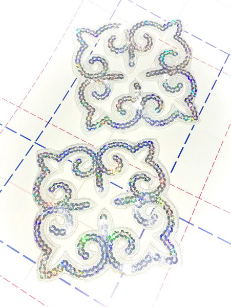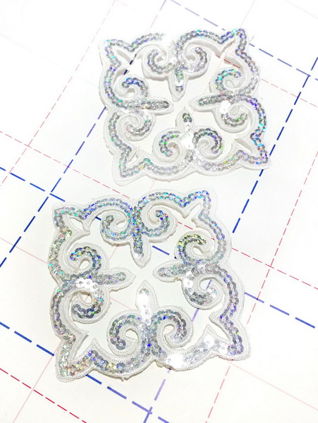 - 44 Термоаппликация с пайетками 9,6*9,3 см Узор квадратный Белый перламутр