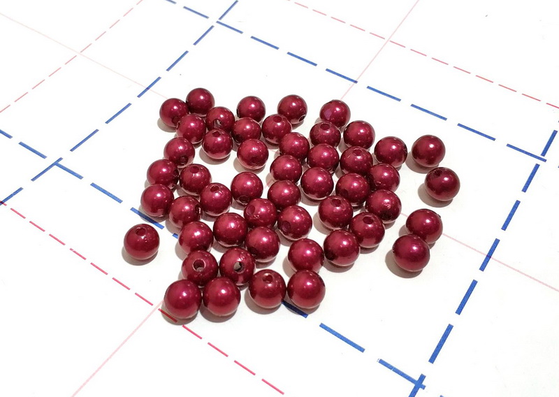Назад 48 Бусы Жемчуг пластик 8мм 50шт/уп Бордовый