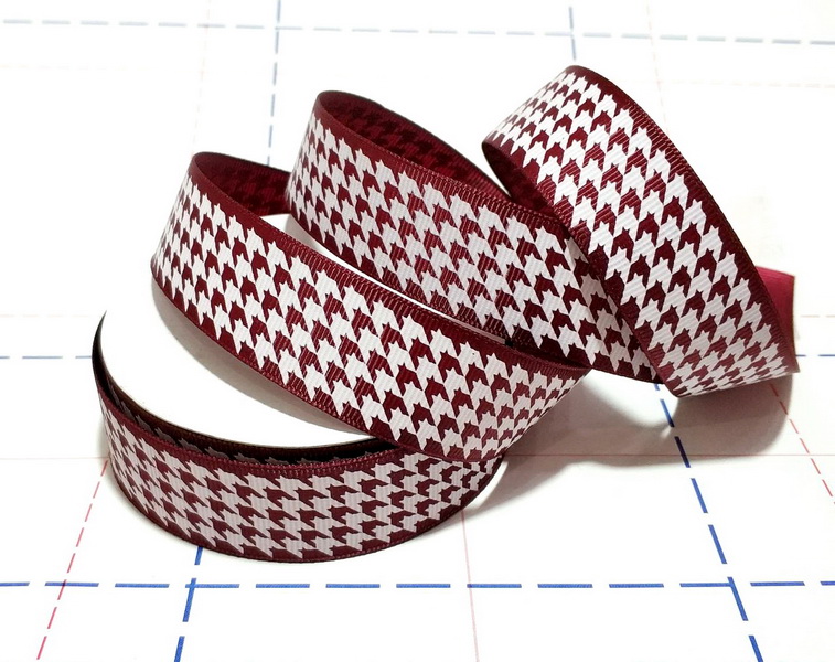 - 483 25мм Репсовая лента с рисунком 23м/боб (+-1м) Гусиная лапка Бордо/белый