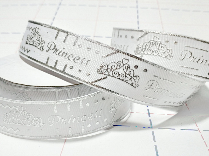 - 510 25мм Репсовая лента с рисунком 9,1м (+-0,3м) Принцесса-тиара серебро Белый