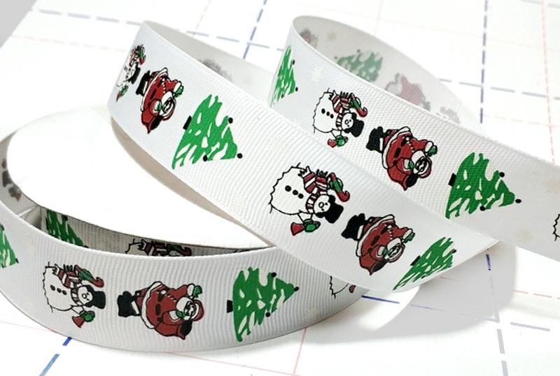 - 525 25мм Репсовая лента с рисунком 23м (+-1м) Елка и снеговик