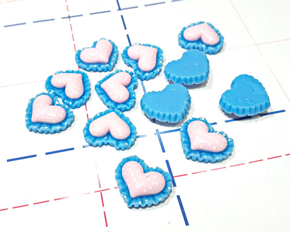 - 539 Кабошон Сердечко в горошек 18*18мм Голубой