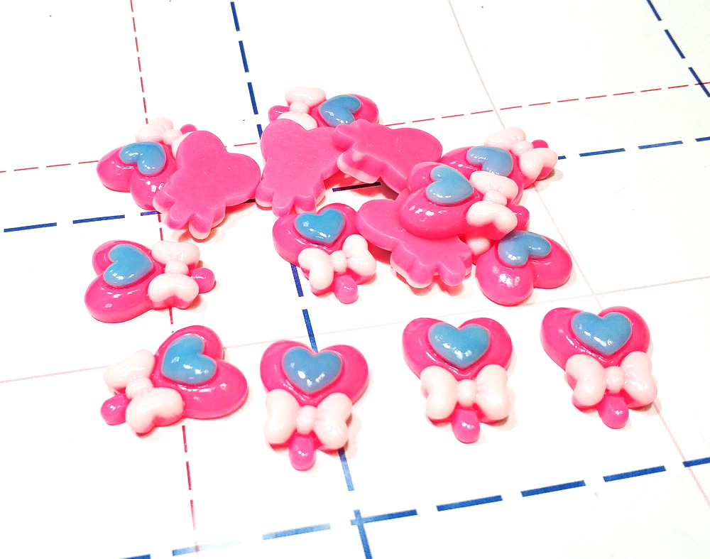 - 540 Кабошон Сердечко с бантиком 22*17мм Ярко-розовый