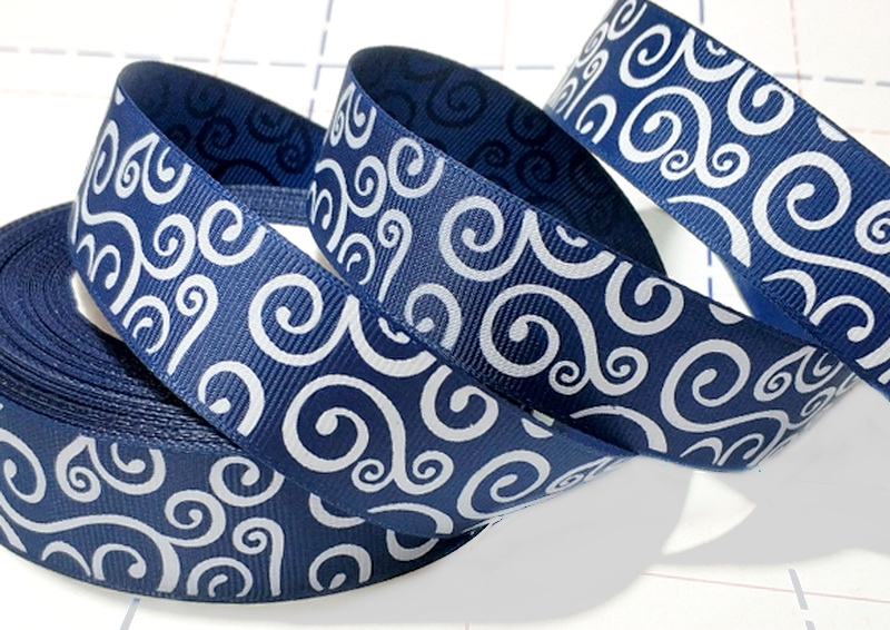 - 541 25мм Репсовая лента с рисунком 23м (+-1м) Узор-витушки Белый/синий