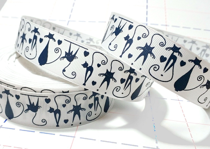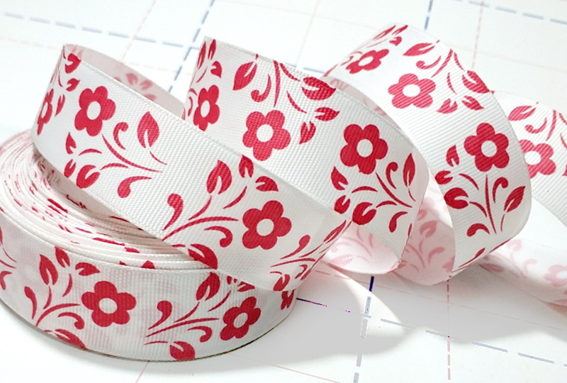 - 547 25мм Репсовая лента с рисунком 23м (+-1м) Цветы Белый/красный