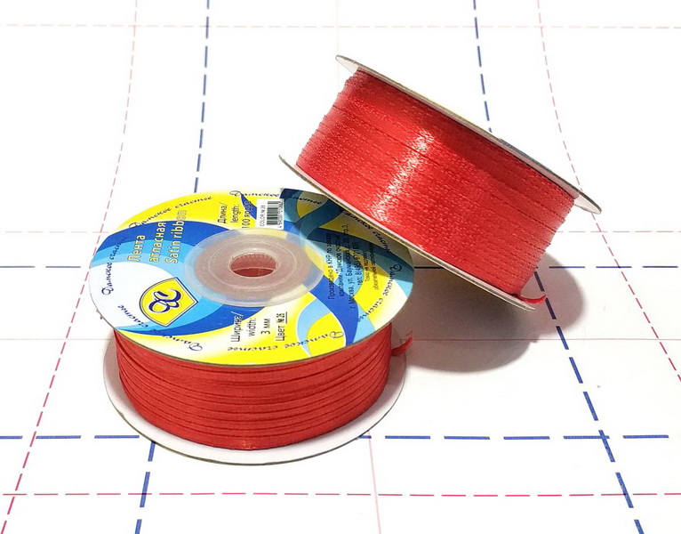 - 62 Лента атласная 3 мм 91,44м/боб Красный