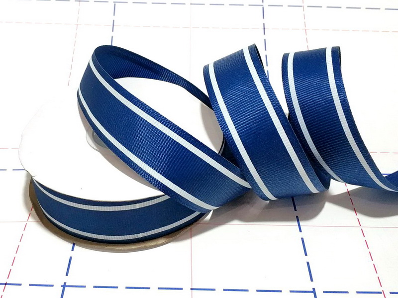 - 621 25мм Репсовая лента с рисунком 23м/боб (+-1м) Полоска Темно-синий/белый