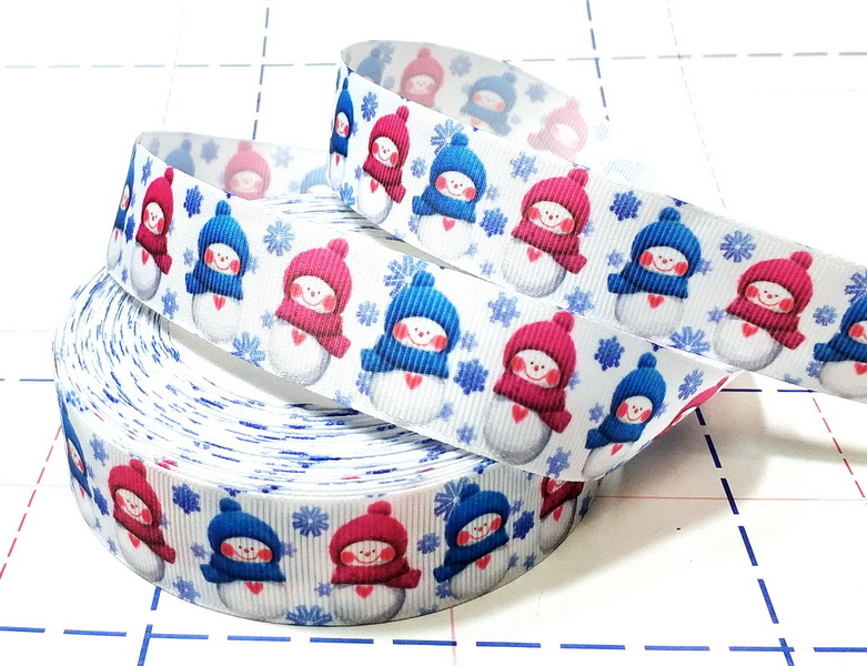 - 624 25мм Репсовая лента с рисунком 23м (+-1м) Снеговики