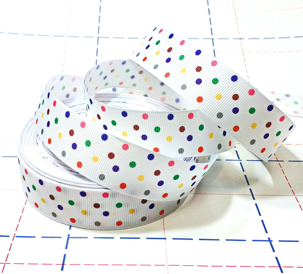- 626 25мм Репсовая лента с рисунком 23м (+-1м) Горох Цветной