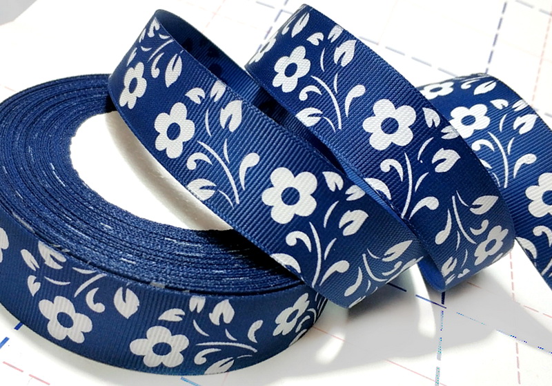 - 627 25мм Репсовая лента с рисунком 23м (+-1м) Цветочный узор