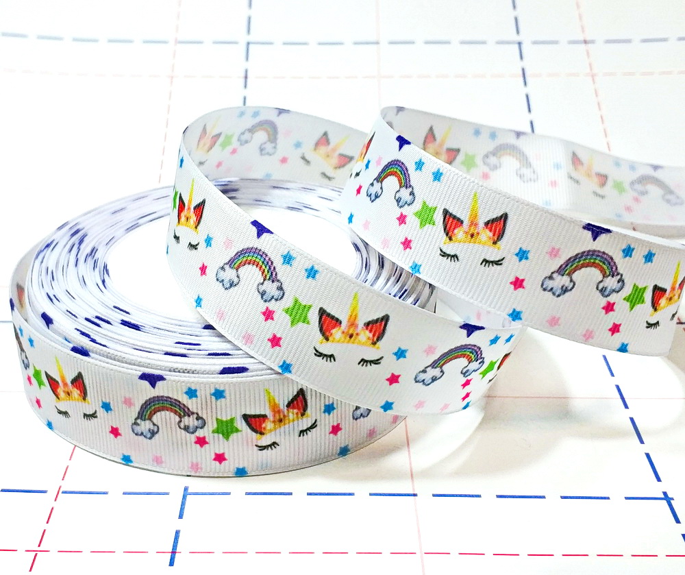 - 638 25мм Репсовая лента с рисунком 23м (+-1м) Единорог-радуга