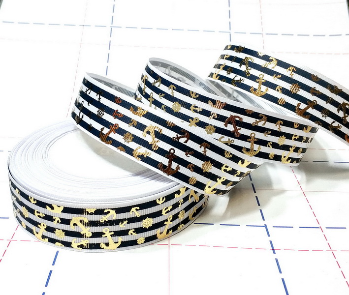 - 681 25мм Репсовая лента с рисунком 23м (+-1м) Золотые якоря