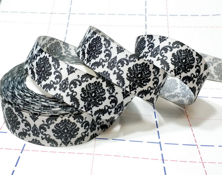 Назад 688 25мм Репсовая лента с рисунком 23м (+-1м) Вензеля Белый/черный