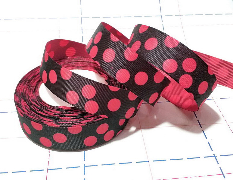 - 693 25мм Репсовая лента с рисунком 23м (+-1м) Горох Черный/малиновый