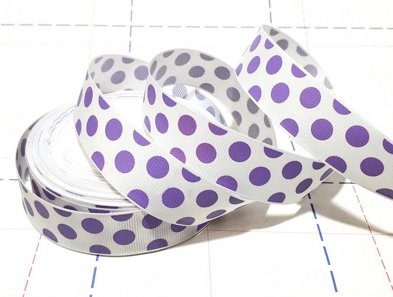- 707 25мм Репсовая лента с рисунком 23м (+-1м) Горох белый/сиреневый