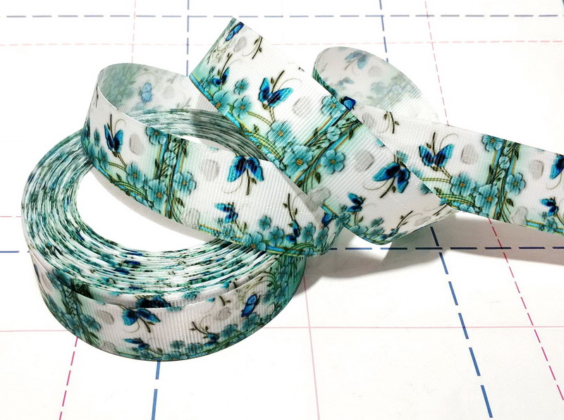 - 710 25мм Репсовая лента с рисунком 23м (+-1м) Бабочки-цветы
