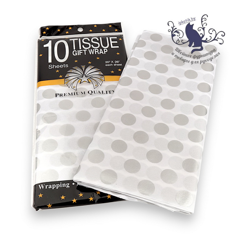 - Бумага тишью Горох 50*66см 10шт/уп Серебро